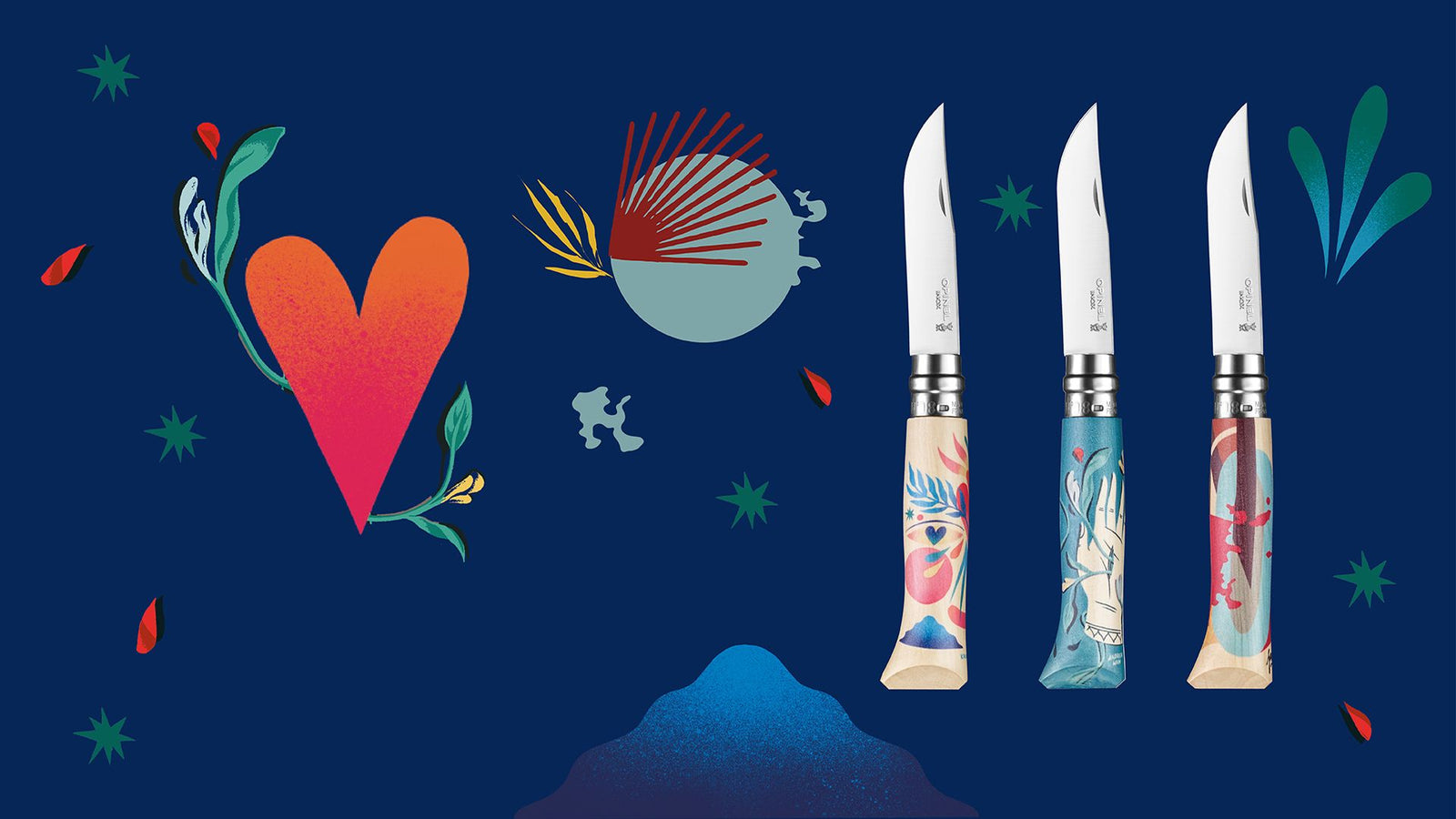 For its «Edition Amour» collection, Opinel invited three young international artists to adorn the handle of the iconic No. 8 pocket knife with their take on the theme of love. «Edition Amour» transcends borders and nationalities for a global reflection on the shape of love in all its forms.