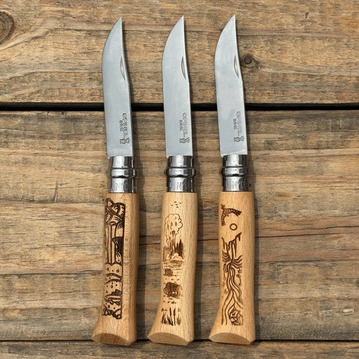 Designed for Opinel by local artists Summer Doss, Matt Brass and Isaac Lowe-Anker, each knife features a National Park dear to them.