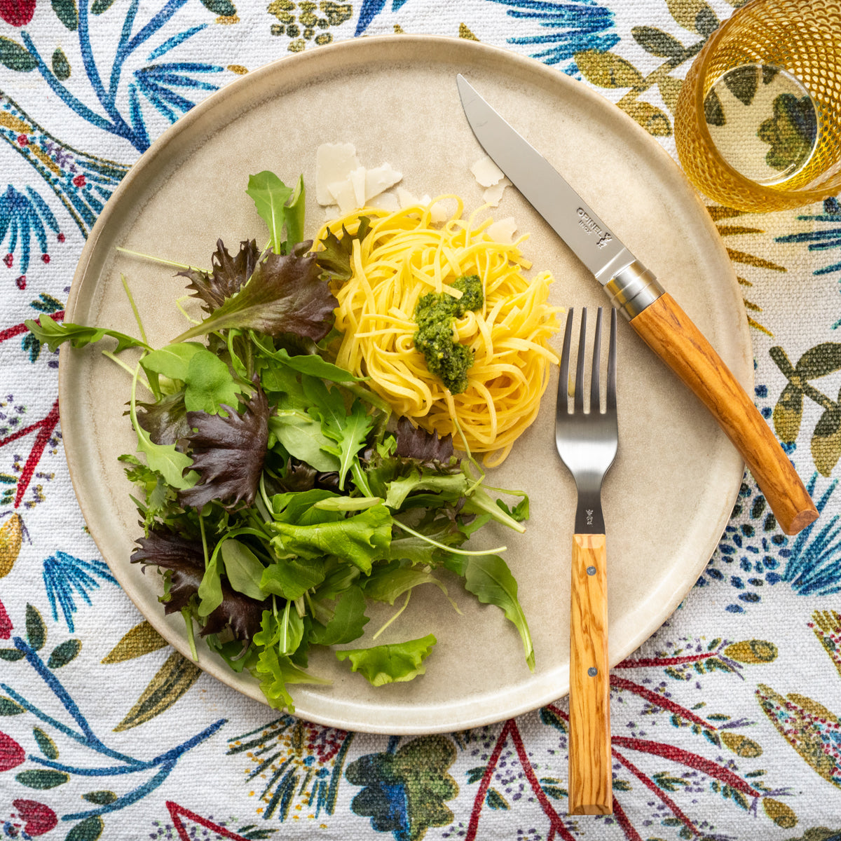 Complimentary woods - ash wood, dark ash wood, and olive wood - pair perfectly with the Opinel Facette steak knives.